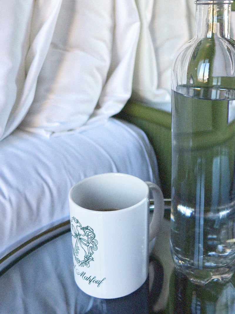 Notre tasse Capricho en céramique avec comme motif le blason de l'Hôtel est parfaite pour votre pause matcha pendant votre Early Check-in.