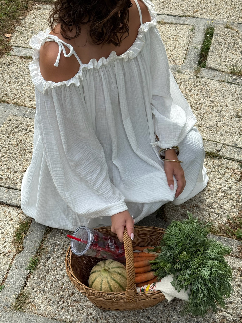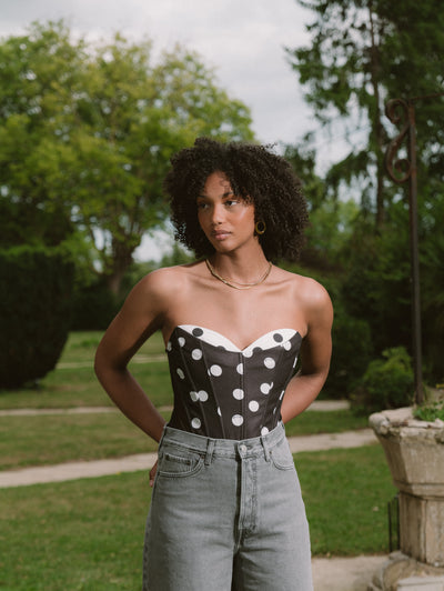 La majorité des pièces de la collection Le Jardin sont conçues à partir de matières responsables, comme le coton, la viscose écologique ou encore du polyester recyclé, limitant leur impact sur l’environnement.